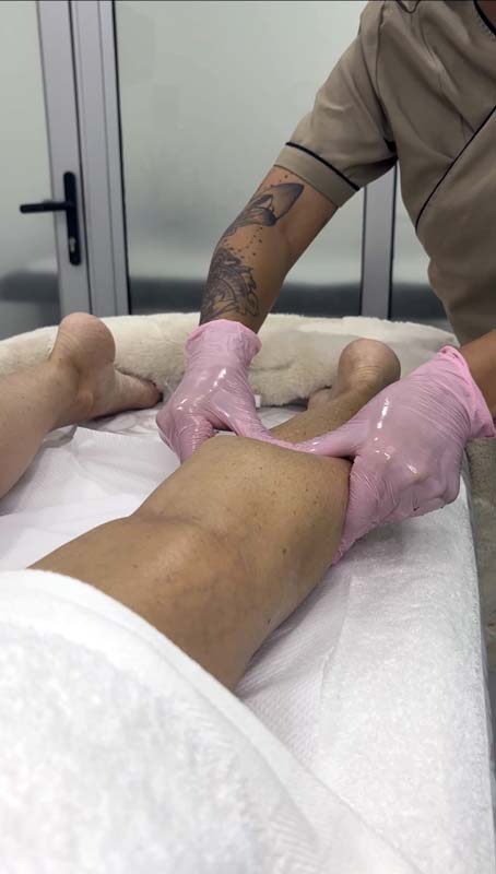 Masaje orientado para aquellas personas que sufren de piernas cansadas con presión media para ayudar a mejorar la circulación de los miembros inferiores.